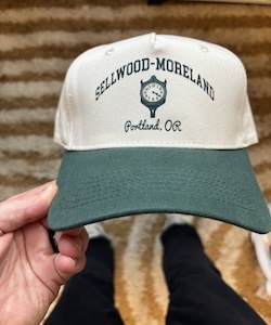 Description: Sellwood Neighborhood Clock Hat. Honors the best neighborhood in Portland, while paying homage to the clock in the neighborhood.