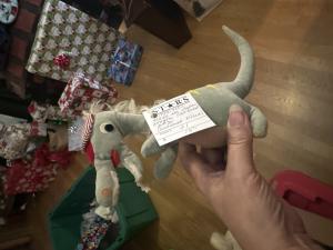 Blue yellow with red and white striped hat made in Japan sawdust filled carnival dragon