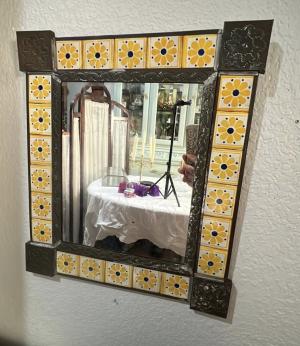 Mexican tin and Talavera tile mirror