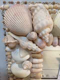 Dealer #60 features a shell mirror in neutral tones with sparkling beach glass tucked in.