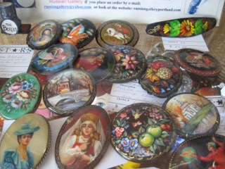 Hand painted brooches to treasure and ponder over are available from Dealer #73. Detailed and one-of-a-kind these artistic pieces are sure to be a favorite.