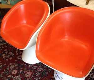 Well it is no secret that we love the color orange. Have loved it before it became the "IN" color. And we will still love it when it becomes the "OUT" color. So when we saw these mod chairs we got excited. Dealer 4 has them for $750
