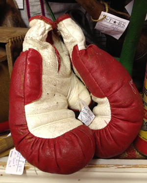 In the boxing ring. We think our Mom would have loved to get each of us a pair and worked out our nervous energy on each other. Dealer 27 has these gloves along with plenty of other sports stuff.