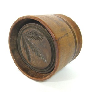 Eating butter is what we prefer but this handsome wooden butter mold would be a nice addition to ones kitchen decor. Dealer 35 has it priced at $42