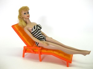 Who would have known when we played with our Barbies that they would become so collectible and so expensive? The Barbie is offered by Dealer 17 for $95. She must be very collectible and dear to some Barbie collector out there, where ever you are. And she even comes with the chaise lounge. Barbie always knew how to do it right. We hate her.