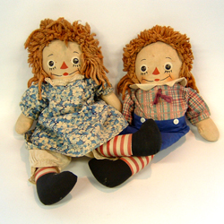 What stories these two dolls could tell us. Dealer #61 has these nice older Raggedy Ann and Andy dollars priced at $70.00 each. A nice example of Americana.