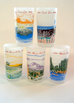 We have always been a fan of these kinds of tourist items. These five Oregon drinking glasses are a great example of that. Dealer #40,/b> has them priced at $24.50 for the 5.