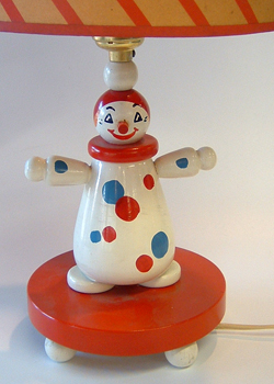 We were drawn to this child's clown lamp from the 50's. It is from Maine and has just the look for a kid's room so long they are not afraid of clowns. Priced at $22.00