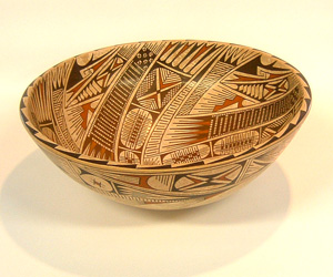 This Casas Grande bowl is truly wonderful. The colors and shape of this bowl make it a true treasure. Dealer 153 has this exquisite bowl priced at $350.00.