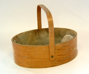 This is an interesting sewing collectible. Dealer #99 has been going back East for years on buying trips. During one of these trips he found this Shaker sewing basket. It is priced at $125.00