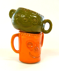 We love this primitive style pottery. Dealer #118 calls these People Lovers and he is right on this account. The sugar bowl is priced at $18.00 and the mug is $15.00