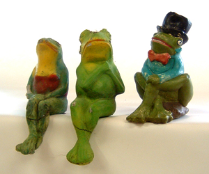 Now why wouldn't you want to have this trio of cement frogs in your garden? We love this kind of garden folkart. Dealer #153 has these froggies priced at $20.00 for the single frog in the right of the photo and $30.00 for the pair to its left. We say, jump on it!