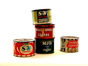 Remember before we had Starbucks. These coffee cans are a great example of collectible advertising. We thought they had an interesting look. And they are reasonably priced at $12.00 each from Dealer #24