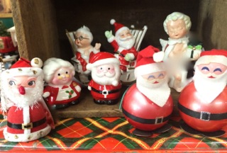 Dealer #44 has the most cheerful Santas with round full bellies and the Mrs. too!