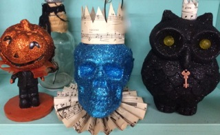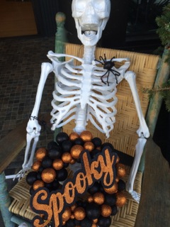 Stars Too has a number of skeletons giving their weary bones a break as they rest in chairs!! This one sporting a "Spooky" wreath.