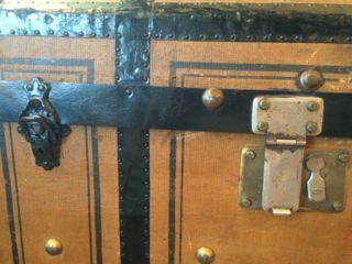 Heavy black metal bands and closures define this trunk at Stars Too. A flat top allows for a unique side table as well as storage for virtually any room.