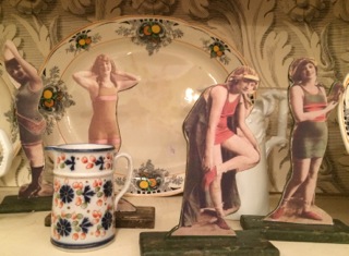 Bathing beauty cut-outs from Stars Too decorate the shelves.