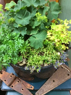 Classic ground covers are artfully planted by Dealer #38. Great containers make for easy table decor.