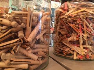Old weathered glass jars with narrow openings are perfect for the windowsill bouquet of single stems; found at Stars Too.