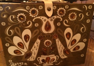 Unique détails make this wooden purse with bamboo handle one-of-a-kind. Just like Mom. Available at Stars Too.